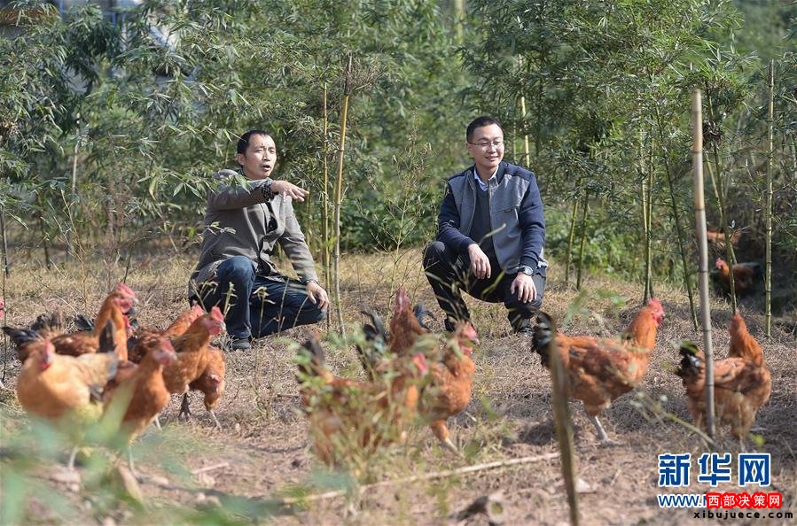 李寶強(右)在一戶百姓家了解林下養(yǎng)雞情況(2015年11月25日攝)。李寶強,眉山市青神縣瑞峰鎮(zhèn)天池村“第一書記”。為集中力量打好脫貧攻堅戰(zhàn),四川省選派1.5萬名優(yōu)秀機關(guān)干部到建檔立卡貧困村任職“第一書記”。黨的十八大以來,以習近平同志為總書記的黨中央高瞻遠矚、深謀遠慮,以高度的政治感、使命感和責任感,把扶貧開發(fā)工作提升至治國理政新高度,廣泛凝聚社會各界力量,推進實施精準扶貧方略,為到2020年全面建成小康社會奠定堅實基礎(chǔ)。按照中央部署,通過產(chǎn)業(yè)扶持、轉(zhuǎn)移就業(yè)、易地搬遷、政策兜底等方式,到2020年將實現(xiàn)7017萬農(nóng)村貧困人口脫貧目標。新華社記者 薛玉斌 攝
