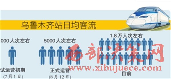 烏魯木齊站統(tǒng)計(jì)數(shù)據(jù)顯示,隨著始發(fā)終到列車增多、周邊公交線路增多以及知曉度提升,該站日均旅客發(fā)送量也由試運(yùn)營初期的1000人次左右,到8月12日正式運(yùn)營的5000人次左右,再穩(wěn)步增加到目前的1.8萬人次左右。