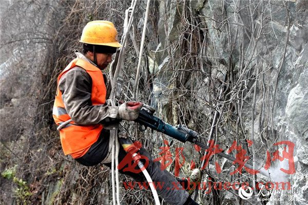 在重大地質(zhì)災(zāi)害隱患點治理現(xiàn)場,記者發(fā)現(xiàn)了一群“大山里的蜘蛛人”。他們在50米高的懸崖上作業(yè),用鐵絲網(wǎng)將大山“網(wǎng)住”,防止懸崖上的石塊掉落,保證國道上來往車輛的行車安全。記者注意到,整個作業(yè)期間,他們都用一根安全繩系住身體,吊在懸崖邊。初冬的北京寒風(fēng)已經(jīng)有些刺骨,在山區(qū)更是比市區(qū)低了幾度,而這些“蜘蛛人”也沒有進行特別的保暖工作。