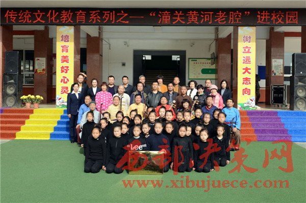 本次活動(dòng)以傳統(tǒng)文化展示與學(xué)習(xí)為主要內(nèi)容,潼關(guān)縣文化館藝術(shù)顧問張建萍老師用生動(dòng)的語言,為現(xiàn)場(chǎng)學(xué)生講解了潼關(guān)縣非物質(zhì)文化遺產(chǎn)概況。非物質(zhì)文化遺產(chǎn)黃河老腔藝術(shù)團(tuán)十余名民間藝術(shù)家現(xiàn)場(chǎng)為學(xué)生們表演了熱情奔放的黃河老腔藝術(shù),并與學(xué)生們進(jìn)行了《我與老腔有個(gè)約定》現(xiàn)場(chǎng)互動(dòng)?;顒?dòng)結(jié)束,該縣文體廣電局授予學(xué)校“潼關(guān)縣傳統(tǒng)文化傳承示范校園”,鼓勵(lì)學(xué)校進(jìn)一步弘揚(yáng)、傳承潼關(guān)傳統(tǒng)文化。
