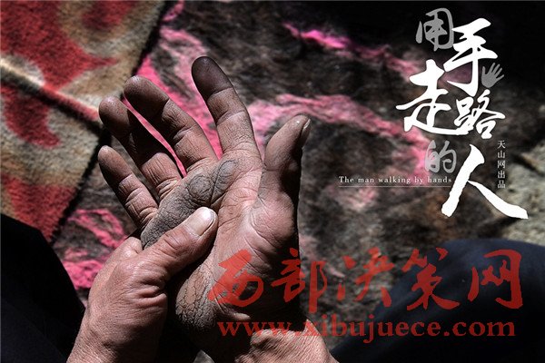 用手走路四十年,吐爾汗巴衣•吾格斯巴衣的雙手。
