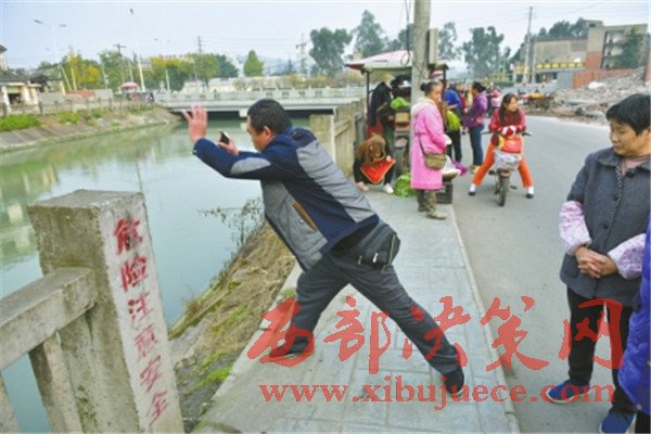 曾勇跑到離家最近的一個階梯處,走下階梯,發(fā)現甘先生根本夠不著竹竿。他繼續(xù)往前跑,第二個階梯處,他目測發(fā)現,雖然甘先生離河岸近一些了,但依然夠不著,只好加速往下游跑。