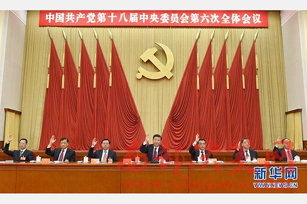 中國(guó)共產(chǎn)黨第十八屆中央委員會(huì)第六次全體會(huì)議,于2016年10月24日至27日在北京舉行。這是習(xí)近平、李克強(qiáng)、張德江、俞正聲、劉云山、王岐山、張高麗等在主席臺(tái)上。新華社記者李學(xué)仁攝