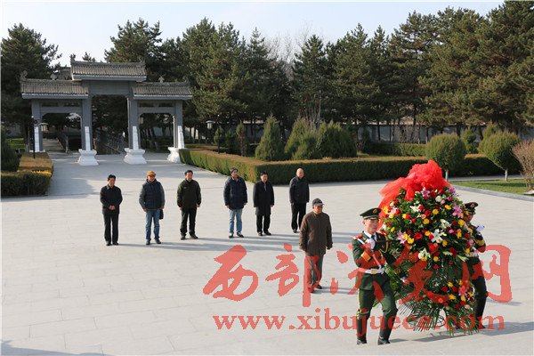 劉廣運(yùn)一行在講解員王倩楠的熱情講解下,移步“紅飄帶”,穿過“兩點(diǎn)一存”主題廣場(chǎng),來到南梁革命烈士紀(jì)念碑廣場(chǎng)前,在哀婉肅穆的獻(xiàn)花曲中跟隨武警官兵鏗鏘穩(wěn)健的步伐走上紀(jì)念碑塔臺(tái),共同向革命烈士紀(jì)念碑敬獻(xiàn)了花籃,集體默哀并三鞠躬,表達(dá)了他們對(duì)陜甘邊革命英烈及無數(shù)不朽忠魂的深深懷念之情和篤篤告慰之心。