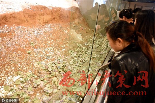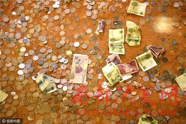 在浙江杭州雷峰塔地宮遺址,不少前來(lái)參觀的游客都往遺址內(nèi)扔錢。
