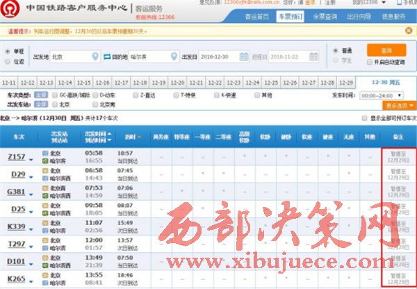 火車票暫售至12月29日。來自12306網(wǎng)站