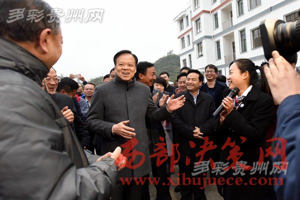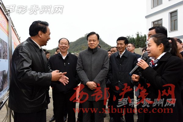 陳敏爾一行認(rèn)真聽(tīng)取黔西縣綠化鄉(xiāng)馬坎村安置點(diǎn)“兩短”“兩長(zhǎng)”的產(chǎn)業(yè)脫貧致富路子的介紹