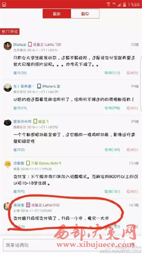 網(wǎng)友的評(píng)論:支付婊升級(jí)支付,升級(jí)一小步,緩交一大步。