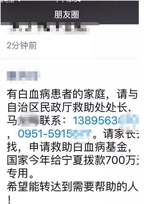 民政部門證實(shí)“寧夏有700萬(wàn)白血病基金”不實(shí) 寧夏人別再傳播這類