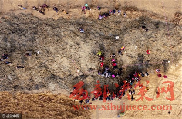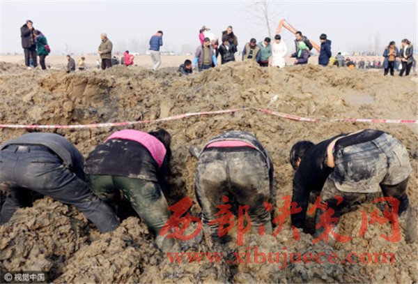 當(dāng)天中午12點(diǎn),中牟縣警方、文物所抵達(dá)現(xiàn)場(chǎng),拉起了警戒線(xiàn),對(duì)“挖寶”村民進(jìn)行了疏散。