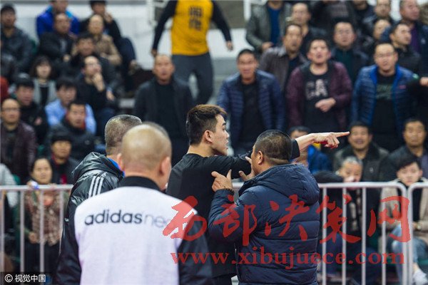 第一次薛飛走向籃架的時候,看臺上的球迷們就情緒激動地起哄,大罵“打他!打他!”