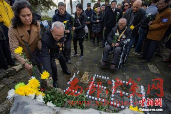 2016年12月12日,在第三個國家公祭日來臨之際,參加過1937年南京保衛(wèi)戰(zhàn)的抗戰(zhàn)老兵、侵華日軍南京大屠殺遇難者家屬、南京1213志愿者聯(lián)合會的志愿者們來到南京光華門遺址公園,向這片曾經(jīng)發(fā)生過激烈戰(zhàn)斗的陣地獻上和平歲月里的悼念菊花。 中新社記者 泱波 攝