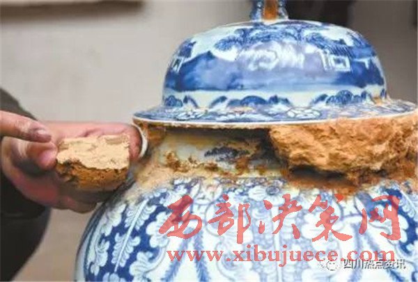 12日,簡(jiǎn)陽高明鄉(xiāng),楊氏后人遷祖墳時(shí)挖出一個(gè)青花瓷壇,疑為清代文物。