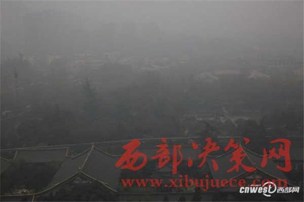 12月20日,西安市空氣質量指數(shù)接近500,空氣質量嚴重污染,昨日西安市首次啟動重污染天氣Ⅰ級應急響應,今日繼續(xù)執(zhí)行重污染天氣Ⅰ級應急響應,幼兒園、中小學停課,機動車限行50%。重度霧霾的大雁塔失去了千年古色,稍遠一點看大雁塔若隱若現(xiàn),再走遠一點大雁塔在視線中消失。登上大雁塔頂層,從東南西北四個窗口拍下的照片幾乎一模一樣。