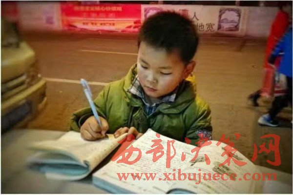 原標(biāo)題:寒夜中 這個8歲男孩趴在垃圾桶上寫作業(yè)