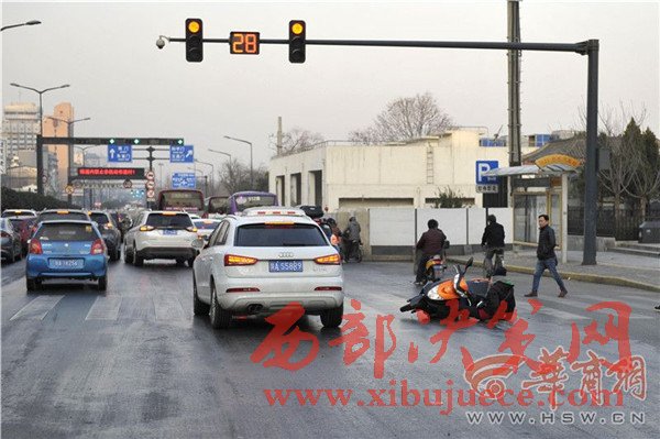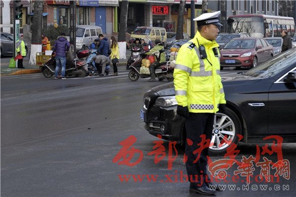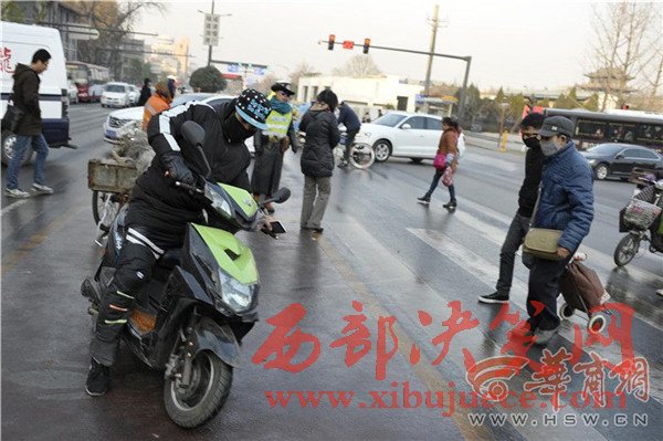站在路口指揮疏導(dǎo)的交警碑林大隊(duì)文藝路中隊(duì)中隊(duì)長(zhǎng)馮侃說,受氣溫降低影響,清晨時(shí)分路面易結(jié)冰,過往車輛務(wù)必注意路況,尤其要保持車距,“同時(shí)也需要提醒行人和非機(jī)動(dòng)車,通過路口時(shí)務(wù)必觀察后通行,以免發(fā)生意外。”