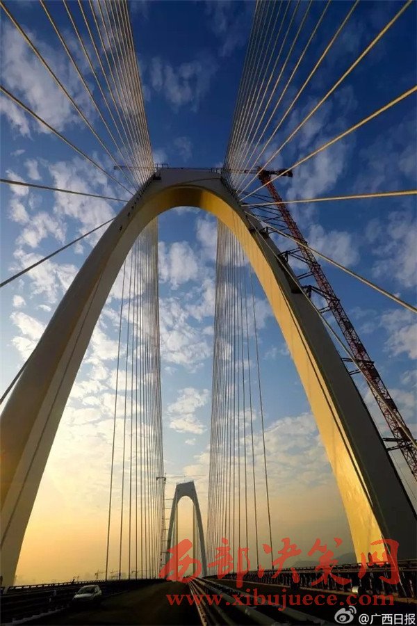 1月3日,主跨達430米的南寧市重點建設項目——青山大橋的橋面已完成鋪設。青山大橋被譽為“邕江最美跨江橋”,其主塔及主跨的長度,都是目前南寧市跨江橋之最,預計將在今年5月左右正式通車,到時候市區(qū)通往五象新區(qū)的交通將更為便捷。