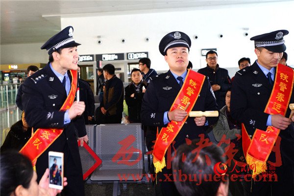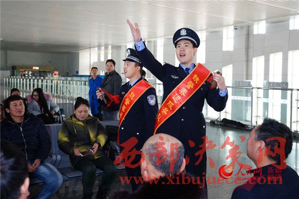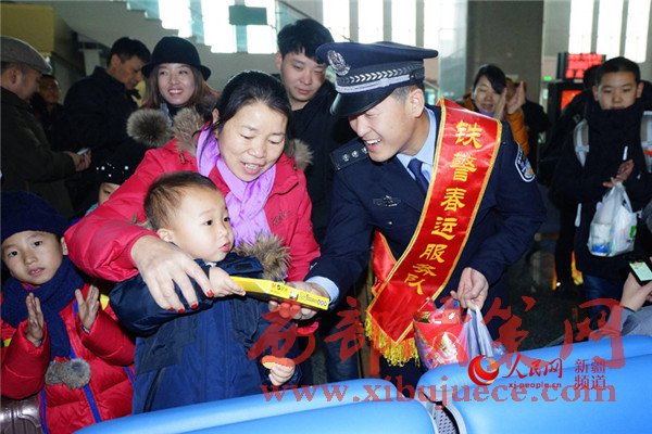 2017年鐵路春運于1月13日正式啟動。為營造春運良好氛圍,確保廣大旅客平安出行,新疆烏魯木齊鐵路公安局哈密公安處從機關(guān)和各派出所抽調(diào)100余名民警組建了10支“鐵警春運服務小分隊”,在轄區(qū)吐魯番、哈密等四個客運站和八個高鐵站,以開展防盜防騙宣傳、文藝互動演出、親民便民服務等舉措,打造“平安、有序、溫馨”春運。