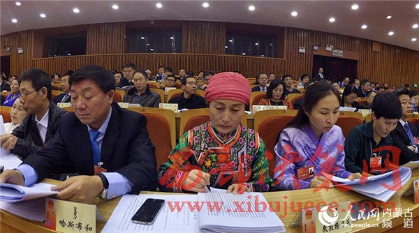 民主、團結(jié)、求實、奮進。內(nèi)蒙古人民會堂格外莊嚴,主席臺帷幕中央國徽高懸,會場氣氛隆重?zé)崃摇?/span>