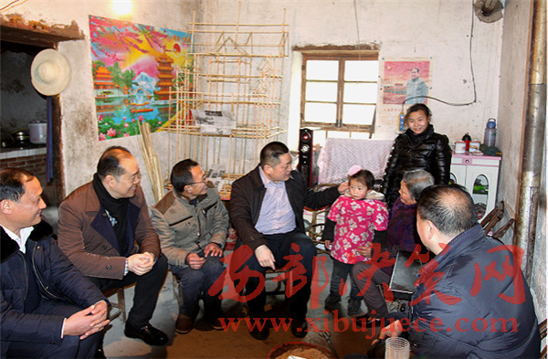 縣長(zhǎng)陳紅星在貧困戶家中(左四為陳紅星)