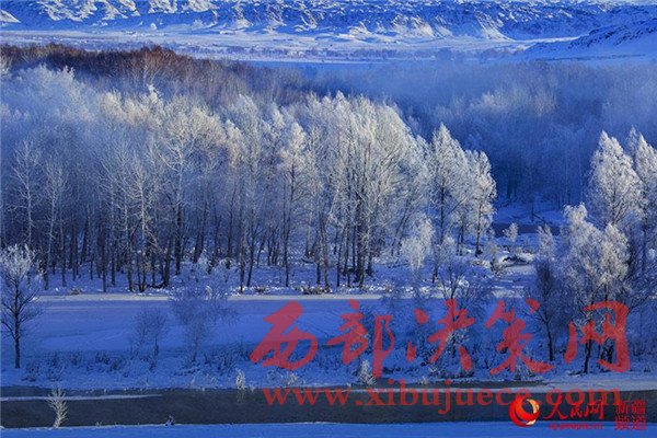 冬日的新疆布爾津是潔白的冰雪世界,銀裝素裹,玉樹瓊枝,小城披上了晶瑩潔凈的白紗。霧凇晶瑩剔透,蔚為奇觀,如此夢幻世界,讓人流連忘返。“霧凇小鎮(zhèn)”沖乎爾,因霧凇壯觀奇特而聞名,每年都有國內外攝影家和旅游愛好者不遠千里為賞霧凇而來。每到冬季氣溫下降,沖乎爾盆地銀裝素裹,布爾津河谷煙籠寒水。河谷兩岸都掛滿了霧凇,滿山遍野的霧凇如禮花般綻放,雪的白色似乎掩蓋不住它們即將綻放的色彩,棵棵白樺宛若玉枝垂掛,簇簇松針恰似銀菊怒放,晶瑩多姿。