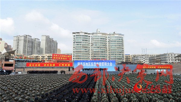 自治區(qū)反恐維穩(wěn)誓師大會(huì)現(xiàn)場。