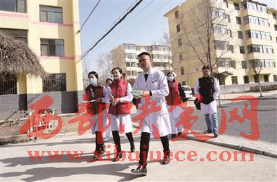 家庭醫(yī)生服務(wù)團(tuán)隊(duì)人員走在上門訪視的路上。