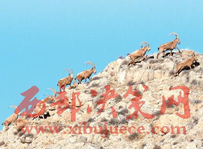 北山羊?qū)賴乙患壷攸c保護動物,體形較大,體長115—170厘米,體重50千克左右,棲息于海拔3500米至6000米的高原裸巖和山腰碎石嶙峋地帶,為棲居海拔最高的哺乳動物之一,在我國主要分布于新疆、甘肅西北部、內(nèi)蒙古西北部等地。北山羊非常善于攀登和跳躍,喜歡成群活動,警惕性極高,覓食時要留下2—3只雌獸放哨,一旦發(fā)現(xiàn)異常情況,群體便迅速奔向山頂,常使有“爬山能手”之稱的雪豹也無可奈何。