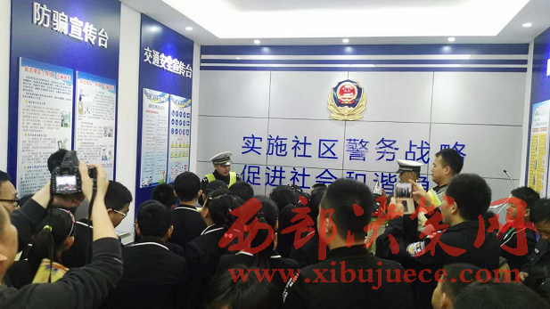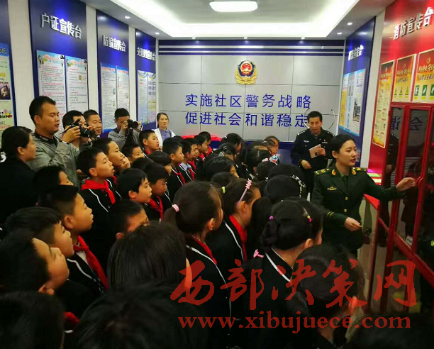 西部決策網(wǎng)-西部大開發(fā)訊(帥華鋒 劉恒)4月19日上午,寶雞市金臺區(qū)石油小學5年級學生在老師的帶領(lǐng)下參觀了東風路派出所陳倉園社區(qū)警務(wù)室。來自金臺交警大隊、金臺消防大隊和東風路派出所民警現(xiàn)場用生動活潑的語言給小學生們上了一堂社會實踐課。