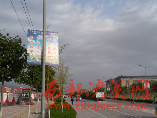 在城關(guān)鎮(zhèn)新民村、段坊村、縣西新社區(qū)及東海路等區(qū)域,更新法治宣傳噴繪40幅,200平方米;更換道旗86面。在縣、鎮(zhèn)、村法治文化廣場更換宣傳欄版面 40 個,利用全縣70輛出租車車載LED顯示屏進行法治宣傳,在縣城主要街道路口懸掛法治宣傳橫幅24條。組織全縣各單位、各商戶通過室外LED顯示屏不間斷滾動播放“深入開展“七五”普法,建設幸福新千陽”、“創(chuàng)建“法治千陽”,構(gòu)建和諧社會”等宣傳標語。