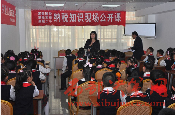 活動開始,首先由辦稅服務(wù)廳劉立主任講話,劉主任的講話讓孩子們知道了納稅的重要性,接下來孩子們參觀了整個辦稅大廳。辦稅服務(wù)廳張曉斌副主任給孩子們授課,同時高新地稅局紀(jì)檢監(jiān)察員宋國中代表高新區(qū)地稅局向二小學(xué)生贈送學(xué)習(xí)用品。二小的學(xué)生代表向稅務(wù)人員鮮了紅領(lǐng)巾,任家銳同學(xué)代表學(xué)生發(fā)言,張森童的媽媽魏苗談參加活動的感受和體會,最后二小李少春校長講話,總結(jié)了這次活動的目的和意義。
