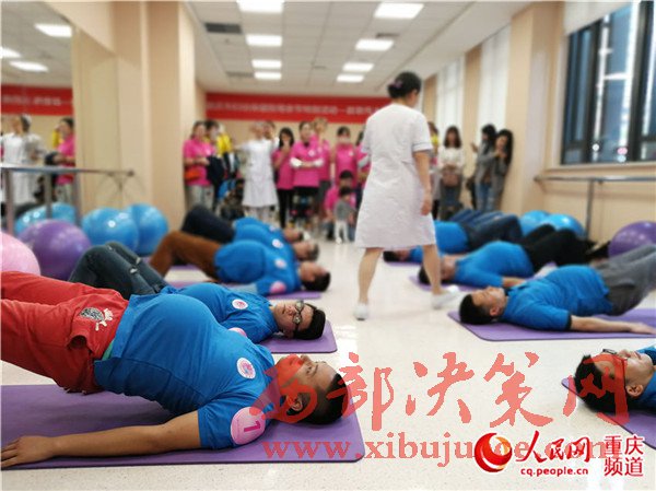 準(zhǔn)爸爸們在現(xiàn)場一起練習(xí)孕婦瑜伽。準(zhǔn)爸爸們在現(xiàn)場一起練習(xí)孕婦瑜伽。