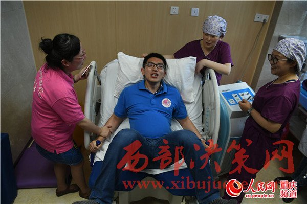 “??!疼死啦!”“快,暫停一下,暫停一下!……生孩子到底有多痛?在母親節(jié)來臨之際,重慶婦幼保健院邀請10對家庭的準(zhǔn)爸爸體驗分娩疼痛,用感同身受致敬母親節(jié)。在現(xiàn)場,準(zhǔn)爸爸們通過分娩疼痛體驗儀體驗1級到10級疼痛,這個過程雖然只有兩三分鐘,他們在最初階段還故作淡定,而在疼痛高潮來臨時已是緊閉雙眼、面部扭曲、嗷嗷直叫。還有幾位準(zhǔn)爸爸,在體驗到8級時,就已經(jīng)雙腿抽筋,不得不示意挑戰(zhàn)失敗。參加完體驗的“孕爸”們紛紛感慨女人生孩子不易,會更加感恩母親的生育之痛,更加關(guān)心疼愛老婆。