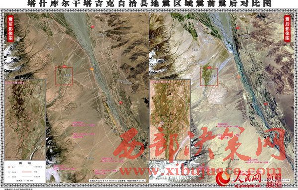 新疆塔縣地震區(qū)域震前震后影像對比圖公布