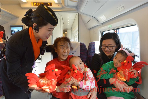 高鐵乘務(wù)員為小旅客送上節(jié)日吉祥物