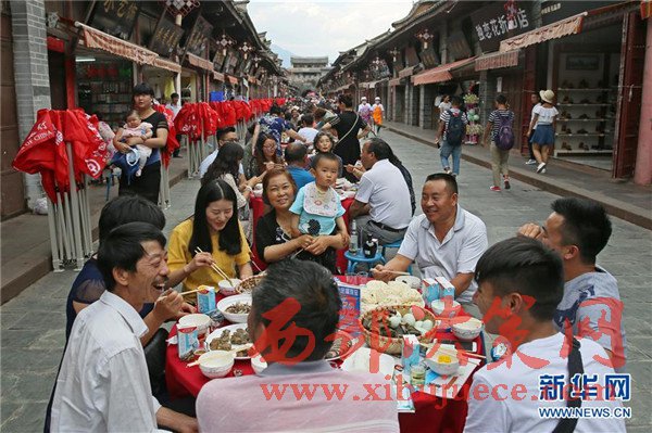 當日是端午節(jié),四川省涼山彝族自治州會理縣會理古城舉行“萬人藥根宴”,約1.5萬人共同在古城內(nèi)1500張桌上就餐。