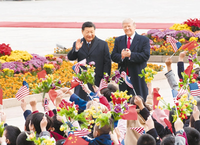 11月9日,國家主席習(xí)近平在北京人民大會(huì)堂東門外廣場舉行歡迎儀式,歡迎美利堅(jiān)合眾國總統(tǒng)唐納德·特朗普對(duì)中國進(jìn)行國事訪問。(記者 李學(xué)仁 攝)