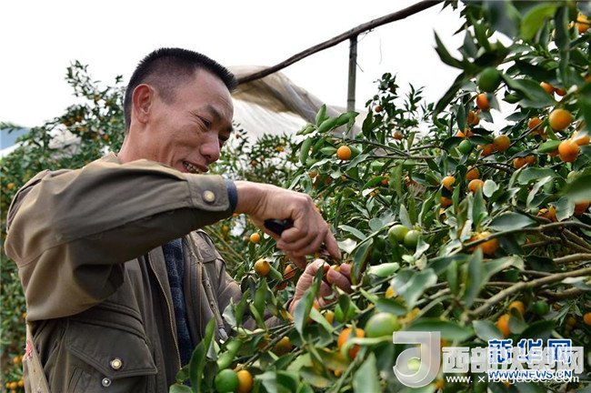 近年來(lái),廣西融安縣因地制宜,把金桔列為扶貧增收的重要產(chǎn)業(yè),通過(guò)農(nóng)業(yè)獎(jiǎng)補(bǔ)政策、專業(yè)種植技術(shù)培訓(xùn)等鼓勵(lì)貧困戶種植金桔,助力脫貧。融安縣大將鎮(zhèn)雅仕村的貧困戶漆昭賢,曾常年在外地打工,生活條件艱苦。2014年在縣里政策引導(dǎo)下,他返鄉(xiāng)種植金桔,并獲得專項(xiàng)補(bǔ)貼和無(wú)息貸款,連續(xù)三年參加縣農(nóng)業(yè)局等單位舉辦的種植技術(shù)培訓(xùn)班。如今,漆昭賢不僅在自己的地里種金桔,還承包了周圍農(nóng)戶的土地,種植面積十余畝,今年預(yù)計(jì)產(chǎn)量可達(dá)16000斤,純收入有望達(dá)到4萬(wàn)元。記者李絢麗攝