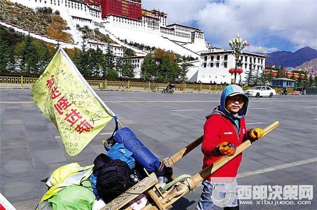 經(jīng)過(guò)119天的漫長(zhǎng)跋涉,從短袖到棉衣,從酷暑到嚴(yán)寒,他用腳板丈量路程。當(dāng)他站在雄偉的布達(dá)拉宮前,瞬間感覺(jué)到“自己的人生完滿了”。