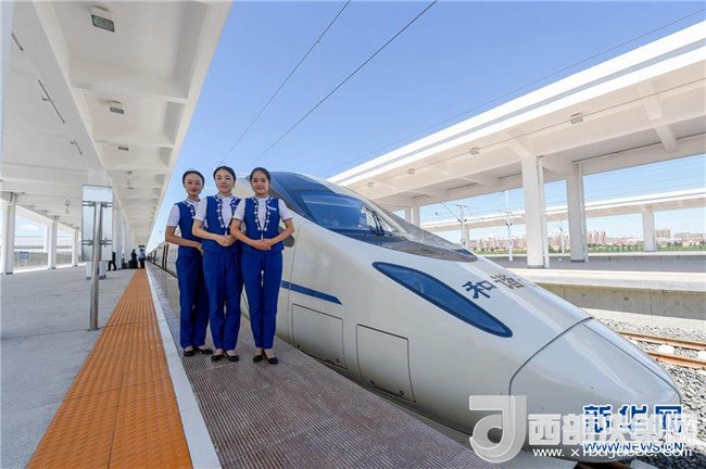 蘭州客運段列車員在蘭州鐵路局開行的首趟寶蘭高鐵G2028次動車組上為旅客表演節(jié)目(7月9日攝)。7月9日,寶雞至蘭州高鐵正式開通運營,西北的甘肅、青海、新疆由此融入全國高鐵大家庭。