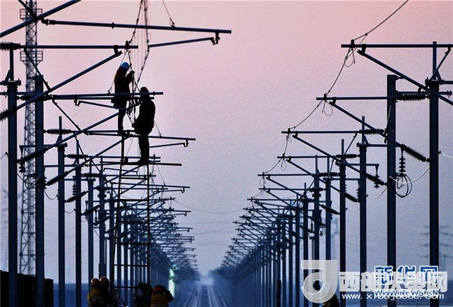 中鐵電氣化局集團的施工人員在濟青高鐵臨淄北至青州區(qū)間進行接觸網(wǎng)作業(yè)(11月26日攝)。濟青高鐵預(yù)計將于2018年底建成通車,屆時濟南至青島最快一小時即可抵達。
