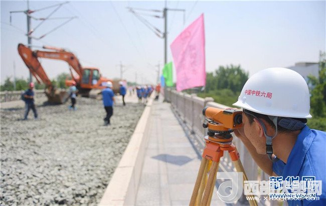 石濟客專引入石家莊樞紐工程的建設(shè)人員在進行測量作業(yè)(6月15日攝)。這一工程預(yù)計今年12月底全線通車,建成后石家莊至濟南乘坐高鐵只需90分鐘左右。