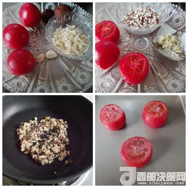 食材:西紅柿3個(gè),香菇2朵,蒜2瓣,鹽適量,黑胡椒碎適量,無(wú)味植物油首選,帕爾瑪干酪或馬蘇里拉奶酪適量。