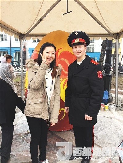 在俄羅斯的節(jié)日慶典活動中,姜若晨(左一)與當(dāng)?shù)剀娦W(xué)生的合影。在她看來,學(xué)子與外國朋友的交往過程中要注重自身形象,傳遞中國微笑。