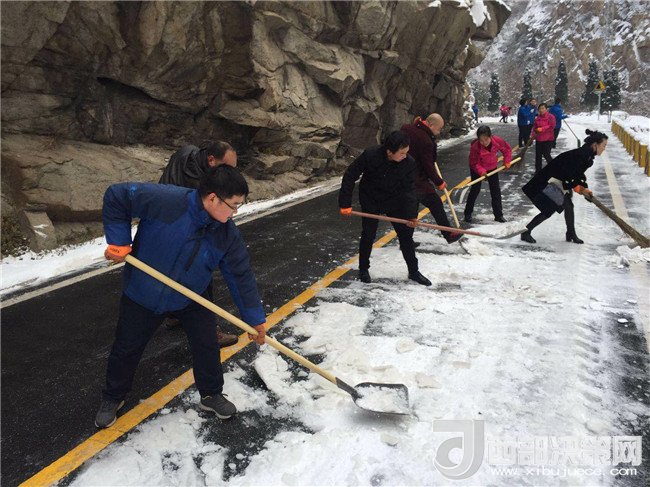 集團(tuán)重點(diǎn)組織清掃了游客中心、進(jìn)山公路及主峰區(qū)道路路面積雪,但由于氣溫驟降,路面結(jié)冰現(xiàn)象嚴(yán)重,員工們頂著刺骨的寒風(fēng),揮著鐵鍬、刮雪板、掃帚等工具清掃厚厚的積雪和冰塊,有效確保了主峰區(qū)路面的貫通。