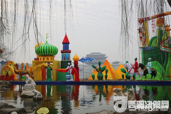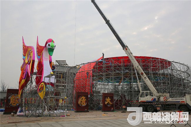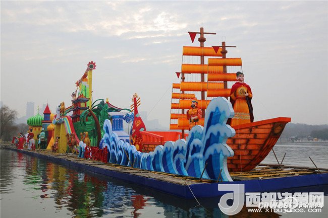1月22日,記者走進大唐芙蓉園,環(huán)芙蓉湖一圈,見2018新春燈會的大型燈組已基本到位,規(guī)模氣勢超大唐芙蓉園歷屆燈會。這組水上燈組濃縮了水陸絲綢之路風情。