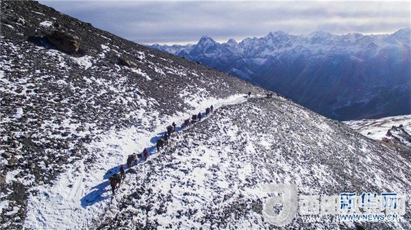 巡診隊沿著幾乎垂直的牧道翻越海拔4000多米的喬拉克達(dá)坂(2017年12月15日攝)。