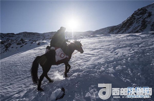 巡診隊醫(yī)生葉力夏提縱馬翻越喬拉克達(dá)坂(2017年12月15日攝)。