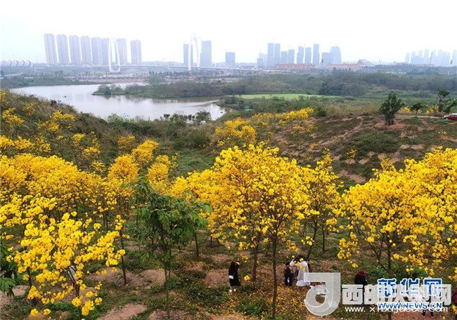 近日,隨著氣溫回升,廣西南寧市城區(qū)各種花卉競相開放,帶來濃濃的春意。 新華社記者 周華 攝