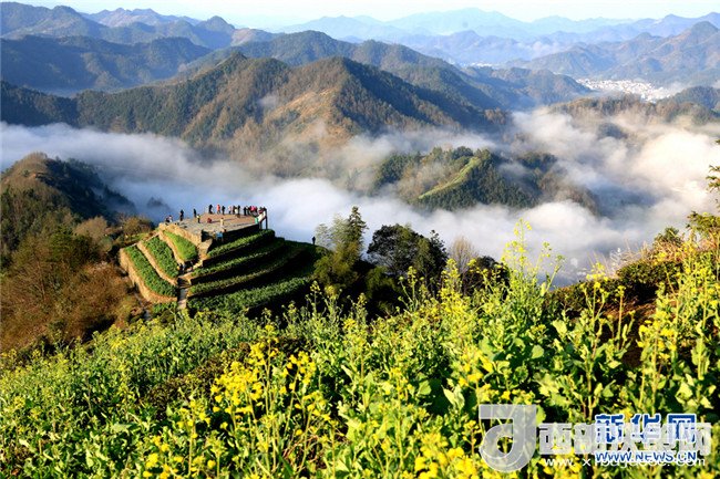 當(dāng)日,陽光燦爛,氣溫回升,安徽省黃山市歙縣境內(nèi)的石潭村、山水畫廓新安江、大洲源等地種植的油菜花陸續(xù)盛開,吸引著全國(guó)各地的游客到此觀光旅游。新華網(wǎng)發(fā)(潘成 攝)
